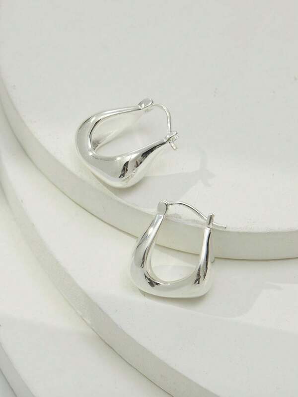 1pair S925 Sterling Silver U-shaped Earrings, Simple And Unique Curved Design, Artistic Style, Suitable For Daily Wear