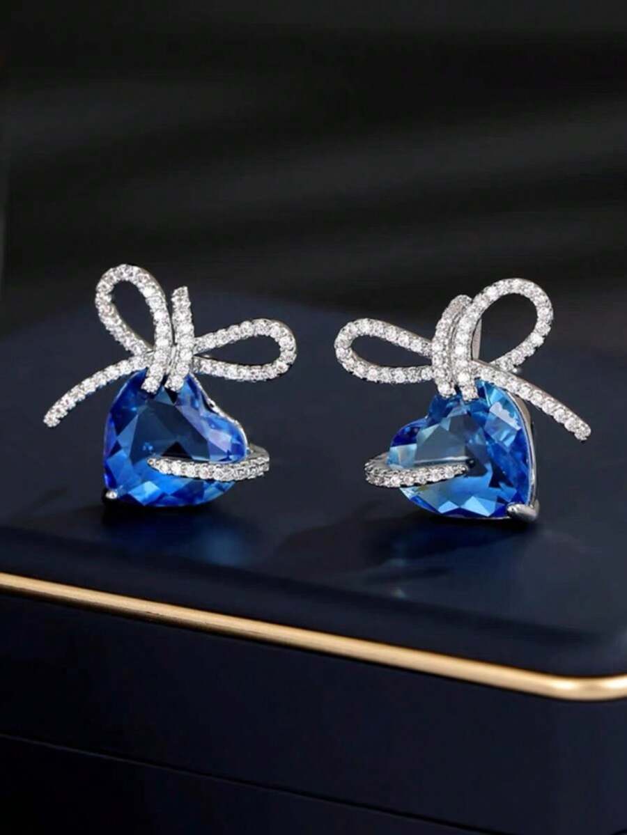 1pair Shiny Butterfly Shaped Cubic Zirconia Copper & 925 Silver Pin Earrings With Ocean Heart Design, Ombre Color Gradient, Suitable For Women At Parties And Gatherings, Gift With 90-Day Non-Fading Warranty