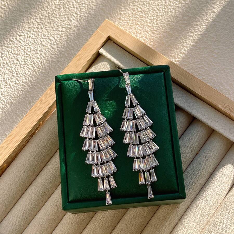 1pair Silver-Color Long Tassel & Zirconia Dangle Earrings, Elegant And Slimming Design For Women'S Daily And Party Wear