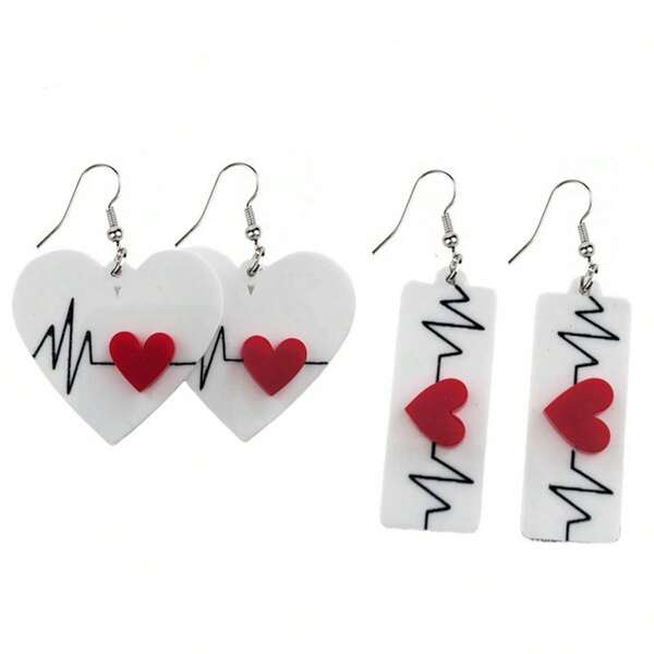 1pair Simple & Exquisite Acrylic Electrocardiogram Heart Shaped Dangle Earrings For Women In European And American Style, New Arrivals For Valentine's Day, Autumn And Winter, With A Cartoon Design, Suitable For Christmas And As Festive Gifts, Also Suitable For Valentine's Day Home Decoration