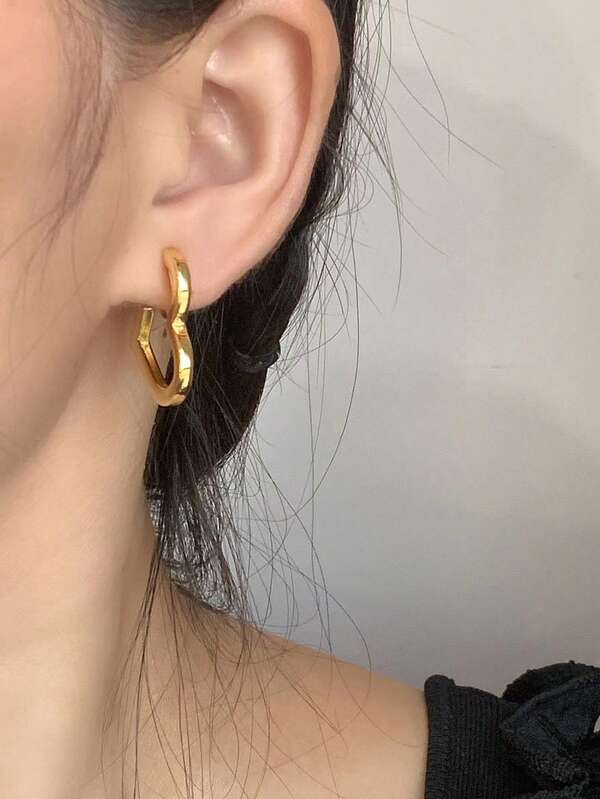 1pair Simple & Fashionable Metallic Hollow Out Bright Heart Shaped Stud Earrings For Daily Wear - Carnival Gift