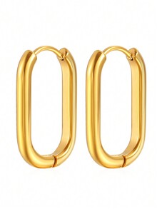 1pair Fashionable Minimalist Stainless Steel U-Shaped Ear Hoop, Gold/Black/Silver Color For Women Daily Wear, Heart Shaped Design, Great Valentine's Day Gift For Girlfriend