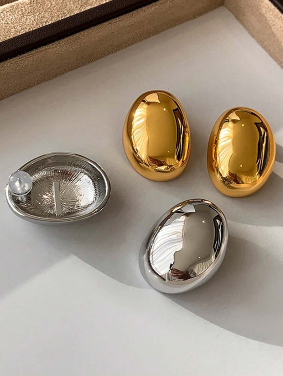 1pair Simple C-Shaped Ellipse Stud Earrings Suitable For Women'S Daily Wear