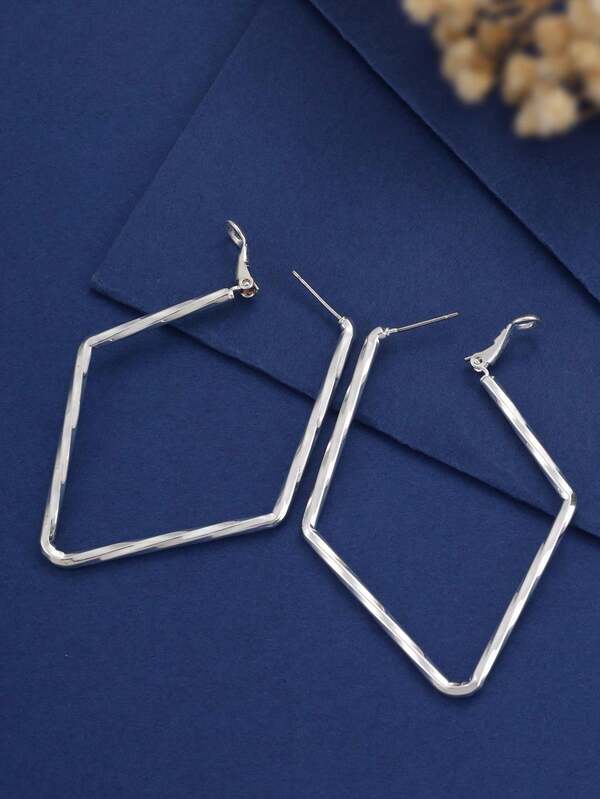 1pair Simple Diamond Shaped Stud Earring, Exaggerated Jewelry For Women, Daily Wear, Birthday Gift