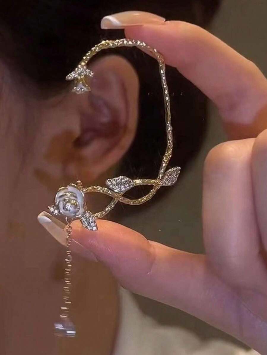 1pair Simple Rose Shaped Non-Pierced Earrings For Women With Unique Tassel Design
