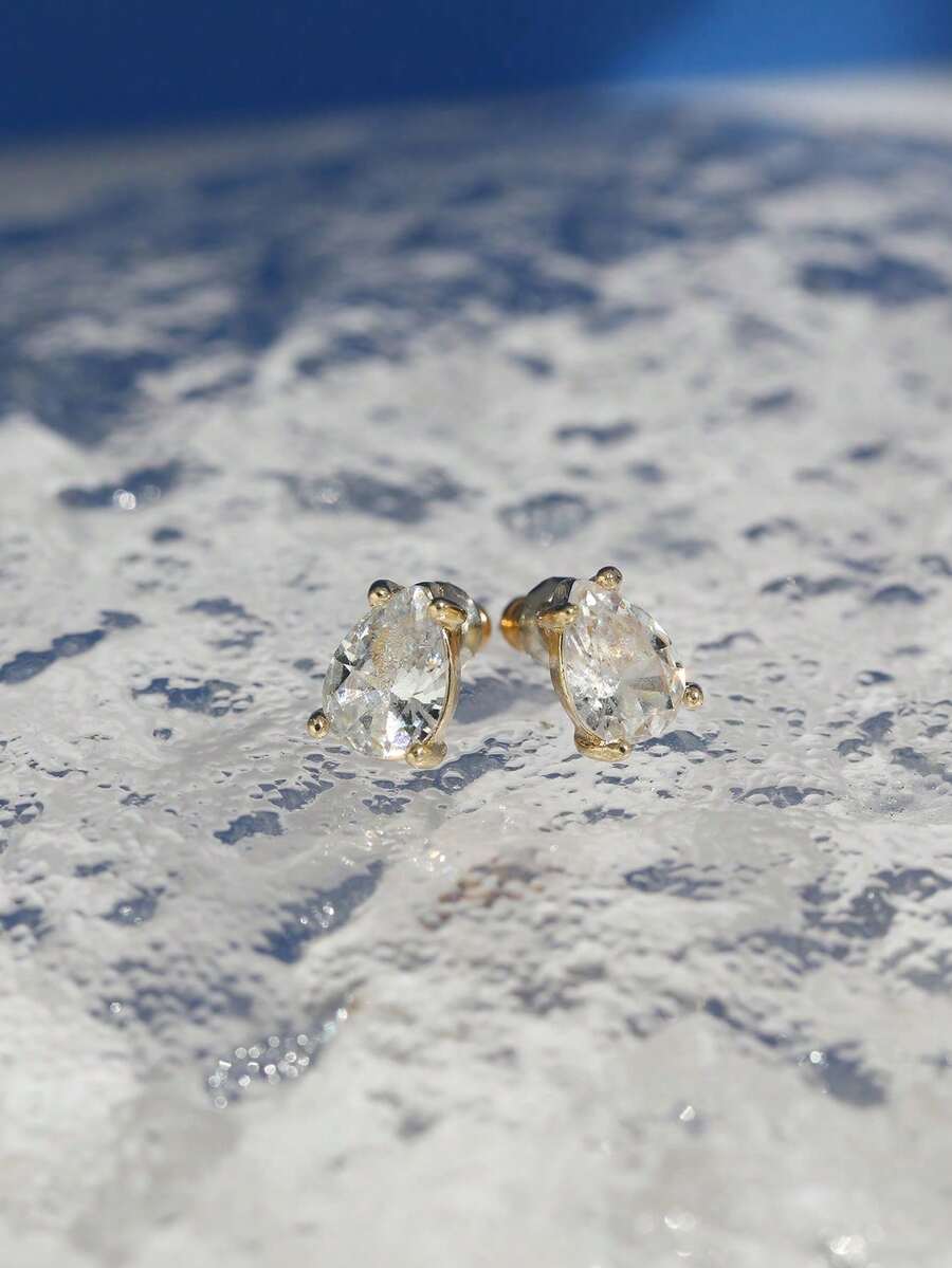 1pair Small & Simple Zirconia Water Drop Shaped Stud Earrings, Shiny Gemstone Ear Accessory Best For Bff Party Gift