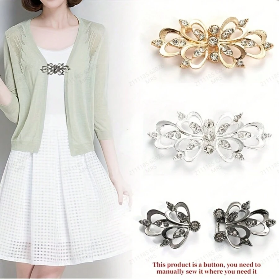 1pair Solid Color Crystal Brooch Women'S Lapel Pin, Suitable For Cardigans, Jackets, Coats, & Dresses