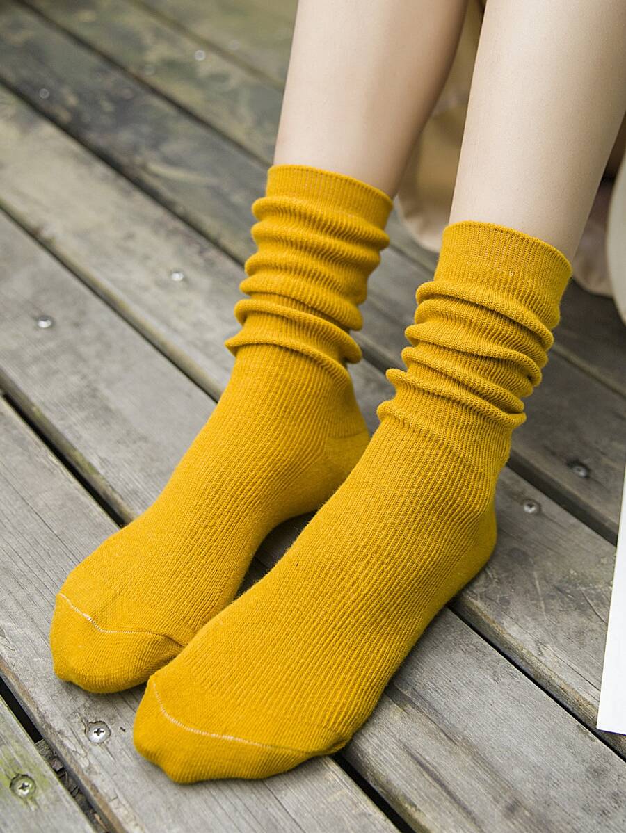 1pair Solid Color Striped Pile Socks Basic Women's Mid-Calf Socks