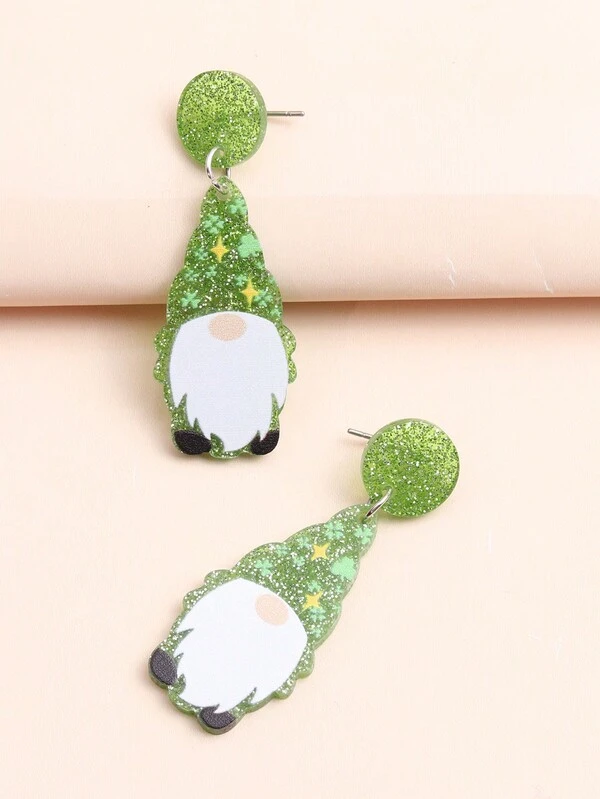 1pair St. Patrick'S Day Star & Hat & Dwarf Design Earrings For Women