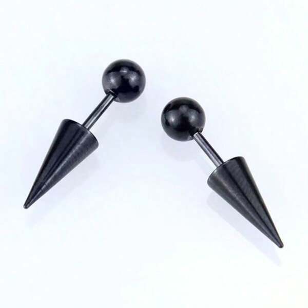 1pair Stainless Steel Long Spike Cone & Ball End Ear Studs, Simple But Trendy, Unisex