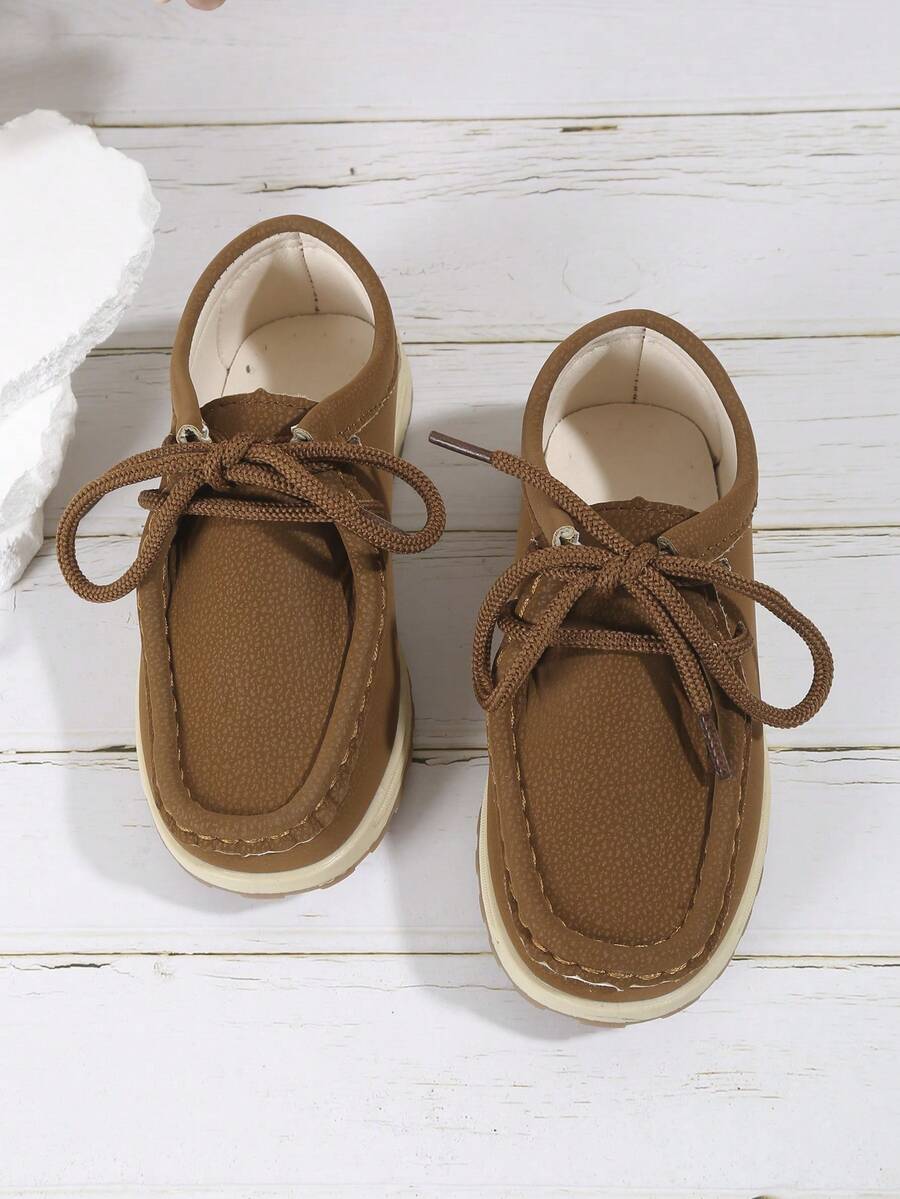 1pair Unisex Kids Casual Breathable Mark Leather Flats Suitable For Spring, Summer And Fall