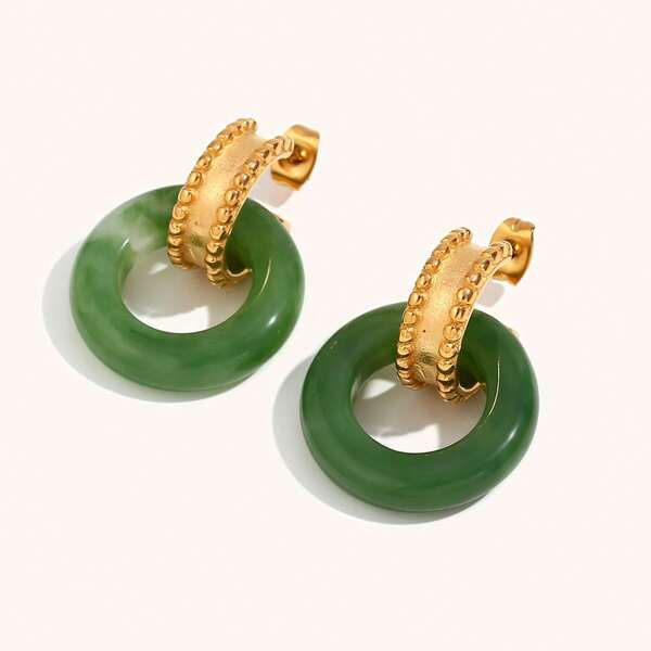 1pair Unpopular Ins Style Luxury Vintage Gold-plated Color-block Acrylic Earrings