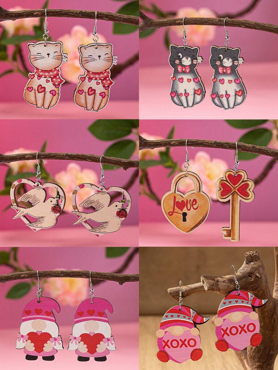 1pair Valentine'S Day Cute Dwarf Heart Xo, Cat, Heart Lock & Key Shaped Earrings For Women