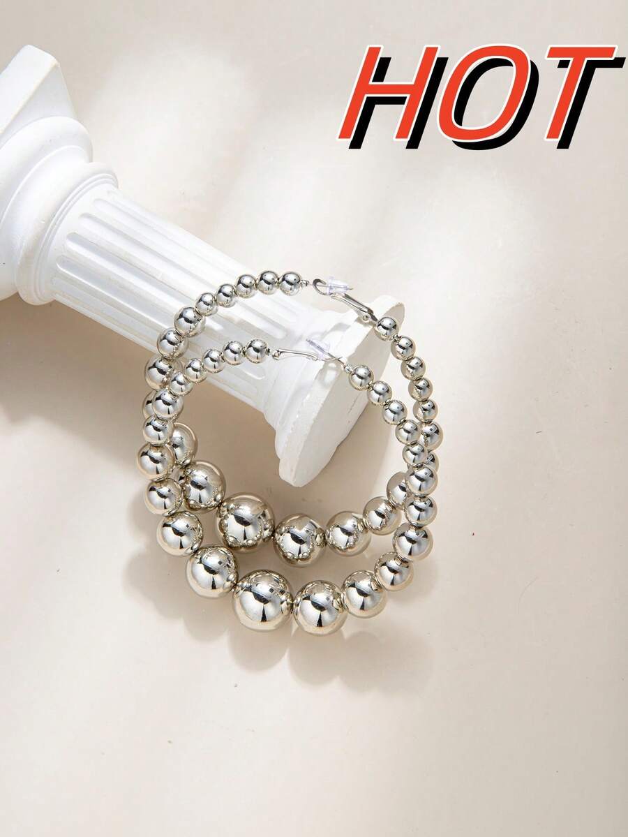 1pair Vintage & Fashionable & Handmade Beaded Large Hoop Earrings Suitable For Women's Daily Wear/Party
