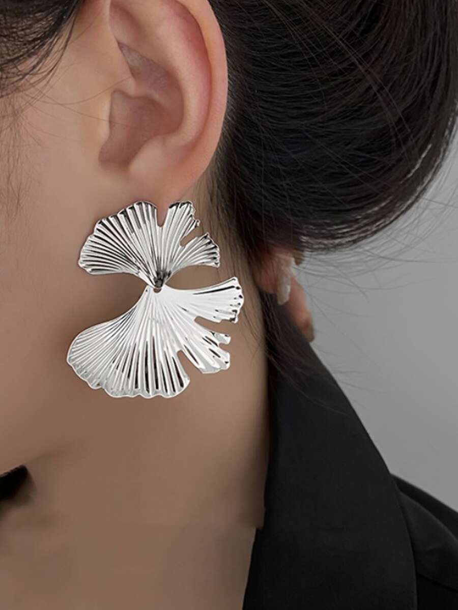 1pair Vintage Exaggerated Asymmetrical Metal Ginkgo Biloba Leaf Stud Earrings For Women Daily Wear