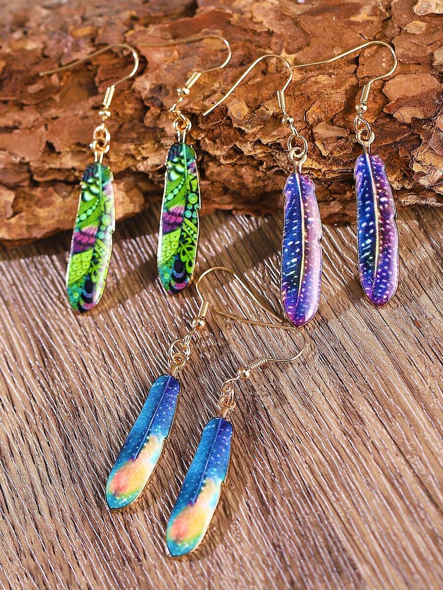1pair Vintage Feather Shaped Earrings With Creative Design Feather & Leaf Shaped Pendant, Suitable For Women