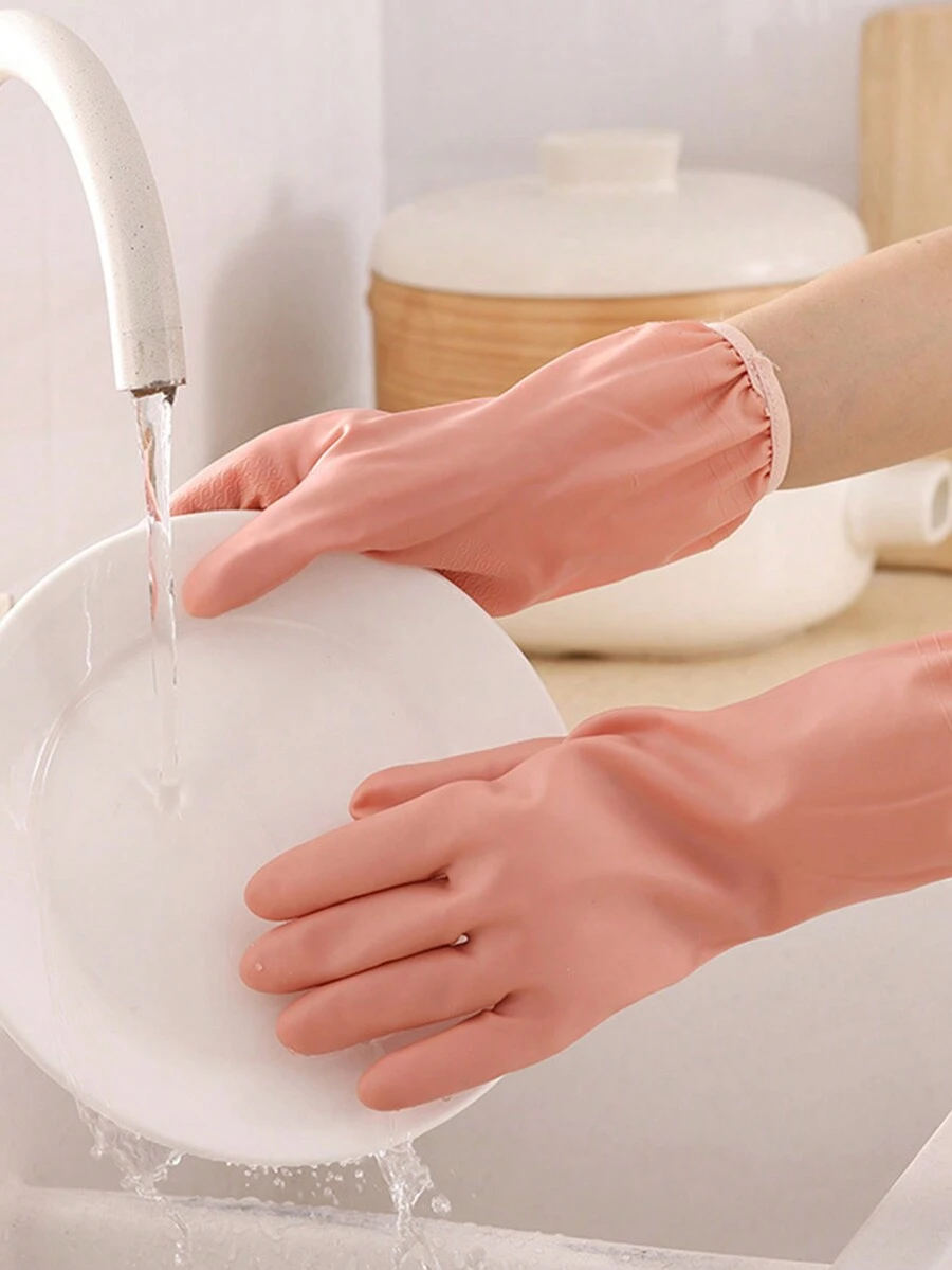 1pair Winter Household Pvc Latex Gloves With Lining, Waterproof, Durable, Suitable For Kitchen Cleaning, Dishwashing And Laundry