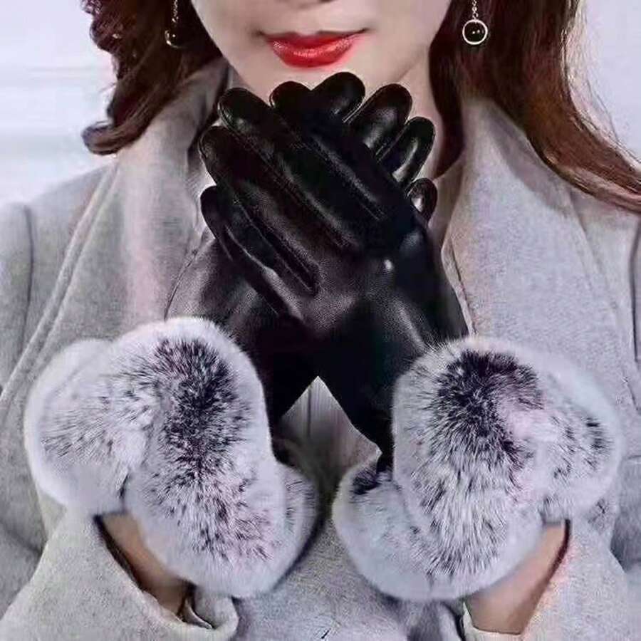1pair Winter Thickened Leather Gloves, Warm Plus Velvet Motorcycle Riding Outdoor Windproof & Coldproof Touchscreen Gloves