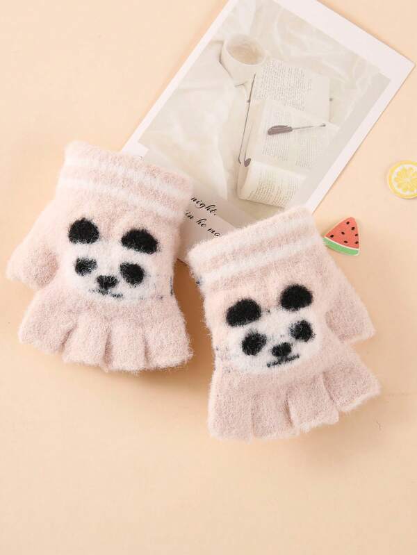 1pair Winter Unisex Half Finger Gloves For Baby, Cute Panda Design Fingerless Mittens