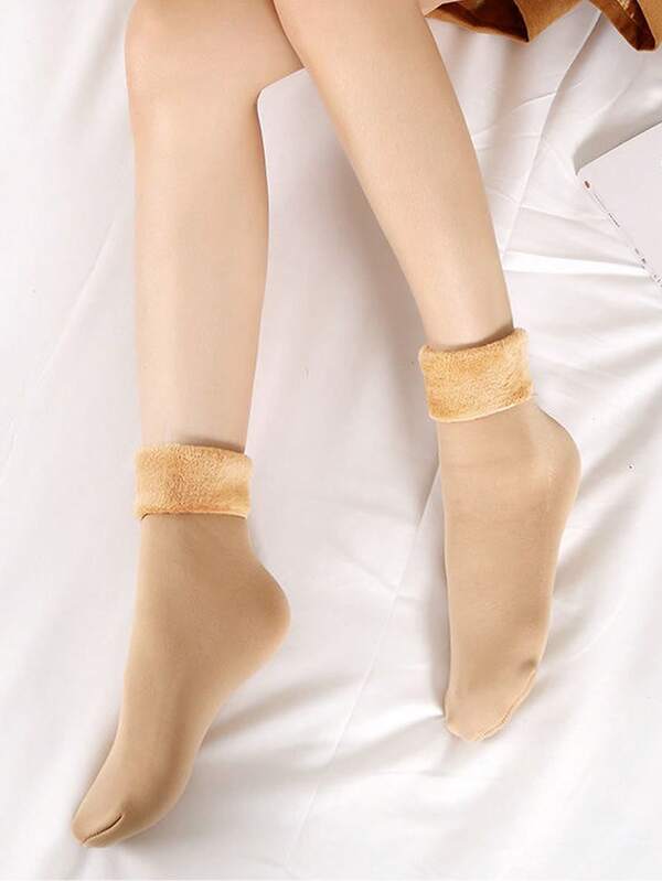 1pair Winter Warm Fleece Lined Socks, Thermal Snow Socks For Men & Women, Mid-Calf Length, Polyester Material, Solid Color, Suitable For Skiing