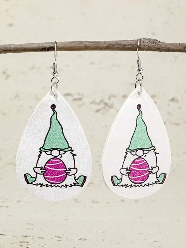 1pair Women'S Fashionable & Casual Dwarf Design Pu Leather Earrings, Ideal Gift For Holidays To Family And Friends