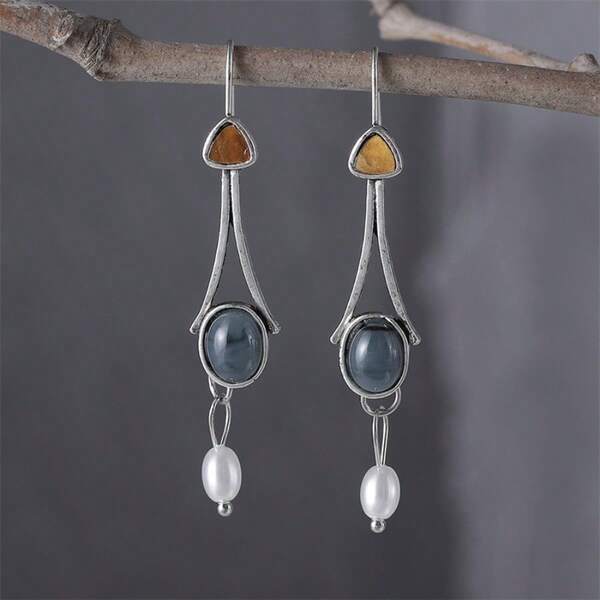 1pair Women'S French Style Vintage Geometric Pearl Earrings Suitable For Daily Wear
