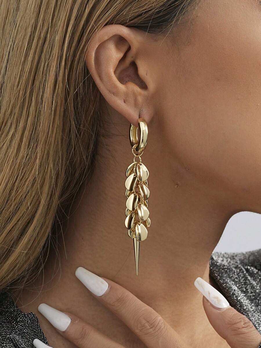 1pair Women'S Irregular Gold Plated Long Geometric Dangle Earrings, Fashionable For Evening Party Accessory, Valentine'S Gift