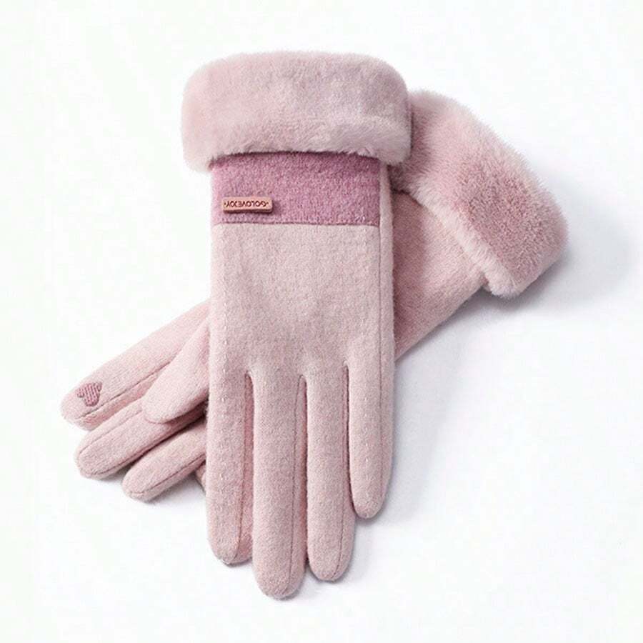 1pair Women'S Winter Wool Gloves, American Style Contrast Color Thickened Fleece Lined Windproof Cold-Proof Velvet Warm Cashmere Mittens With Touch Screen Function