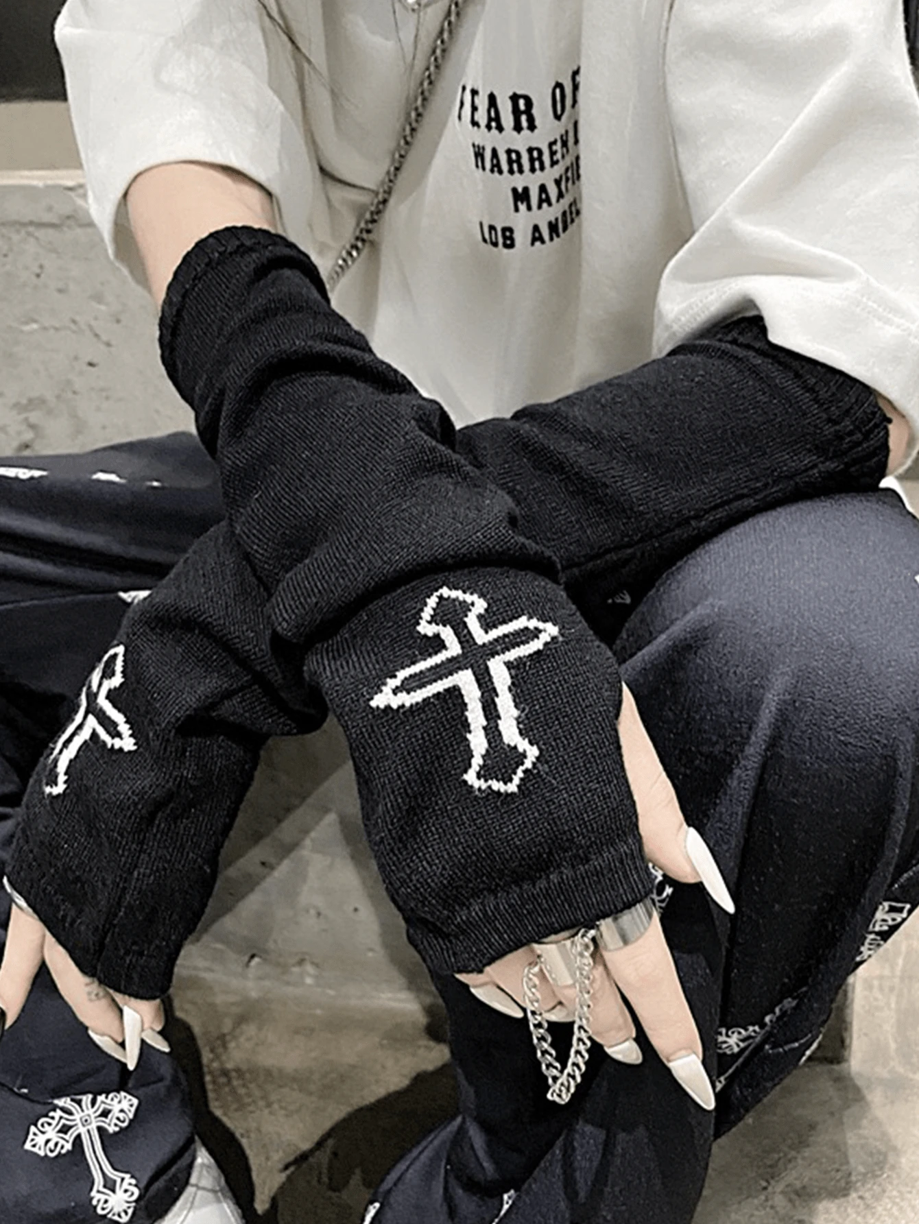 1pair Women's Cross Pattern Sleeve Without Fingers, Stylish & Versatile Trendy Fashion Item