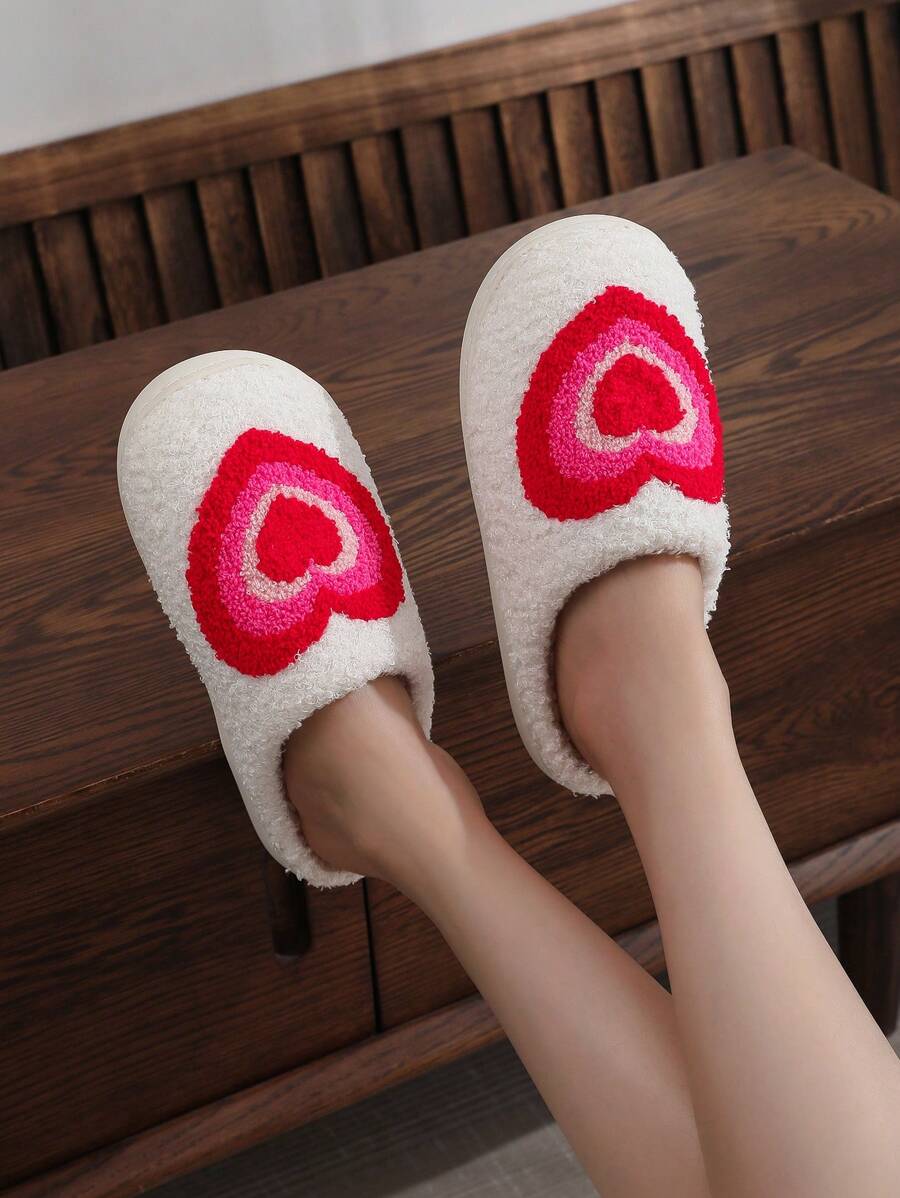 1pair Women's Elegant Gradient Heart Embroidery Indoor Slippers With Tpr Sole, Thick Anti-slip Bottom, Rainbow Transition Color & Pink Heart Shape Design For Autumn Winter Home Life, Valentine's Day Gift, Soft Toweling Fabric