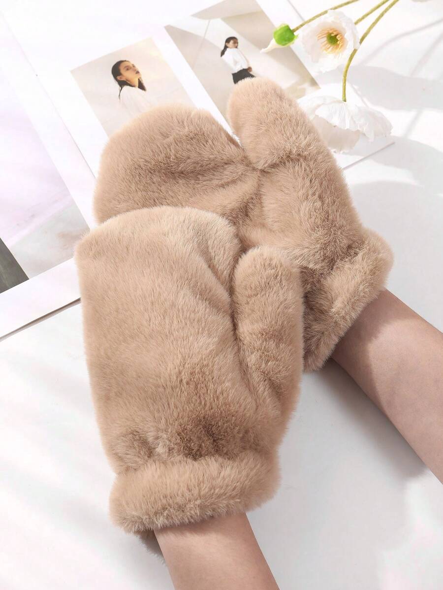 1pair Women's Warm & Plush Thickened Gloves With Neck String For Winter