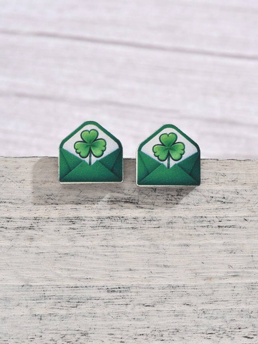 1pair Wooden Dwarf & Clover & St.Patrick'S Day Themed Stud Earrings For Women, Creative Versatile Novel Jewelry For Friends Gathering, Party, Festival, Gift