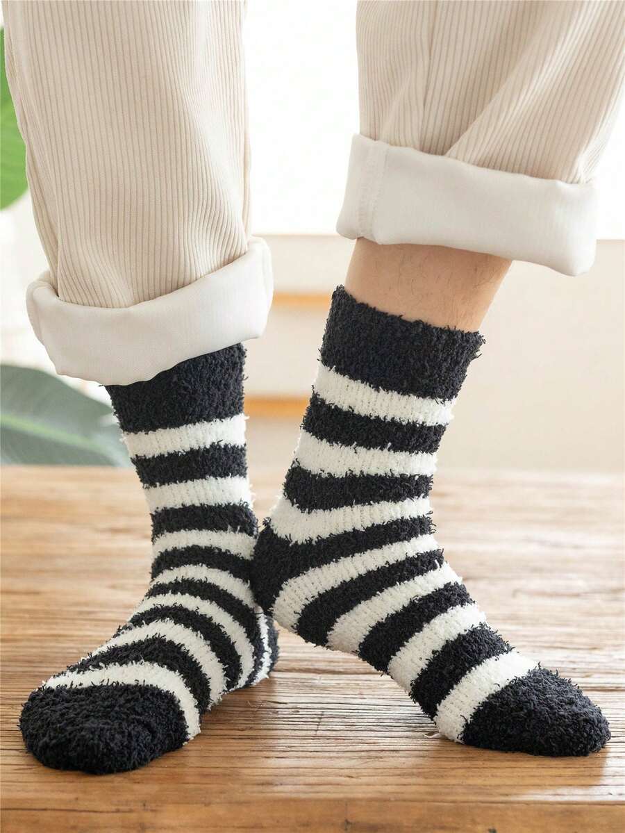 1pair/package Men's Winter Style Half-terry Thickened Plush Floor Socks, Mid-calf Length