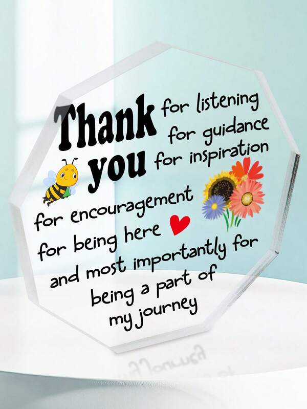1pc Transparent Nonagon Acrylic Plaque,Thank You Gift For Listening,Guidance,Inpiration,Teachers,Friends,Family,Most Importantly For Being A Part Of My Journey,Goodbye Gifts For Friends,Office Present For Teachers, Friends, Retirement Gift For Teachers,Boss,Unique Retirement Gift For Teacher, Best Birthday Gift For Teachers Professor, Thanksgiving Gifts For Parents, Sisters And Brothers,Graduation Gifts For Classmates And Teachers,Leaving Job Gifts For Colleague,Friend,Farewell Gift, Art Craft Ornament Gift,Thank You Grateful Gifts,Gracias Navidad Regalo De Agradecimiento De Acción De Gracias,Merci Cadeau D'Appréciation De Noël -Exquisite Gift To Friends-Appreciation Gift With Exquisite Prints, Grateful Gifts-Gift For Love-Teachers' Day Gift-Mother'S Day Gifts-Father'S Day Gift-Gift For Sister-Gift For Bestie-Best Heartwarming Gift Ideas,Transparent Nonagon Acrylic Desktop Decoration -Interesting Design Party Gifts,Freestanding Acrylic Keepsake Gift,Unique Souvenir Acrylic Plaque