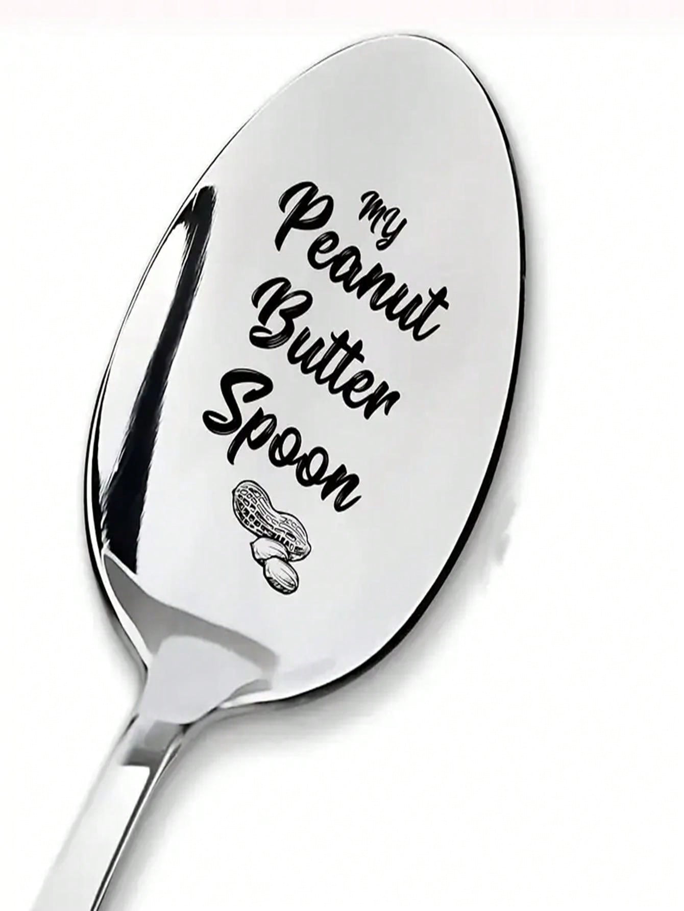 1pc, My Peanut Butter Spoon Funny Engraved Stainless Steel Spoon, BestPeanut Butter Spoon Dessert Spoon Gifts For Dad Mom Grandpa Grandma Birthday Christmas Gift