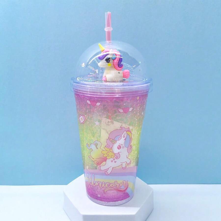 1pc, Unicorn Tumbler With Dome Lid And Straw, Double Walled Plastic Water Bottle, Shiny Glitter Cartoon Unicorn Water Cups, Cute Kawaii Summer Winter Drinkware, Travel Accessories, Home Kitchen Items, Back To School Supplies