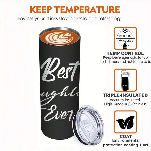1pc,20oz Double Walled Stainless Steel Insulated Cup, Letter Printed Best Series, Birthday Gift For Daughter, Family Member Affection Cup, New Year Gift