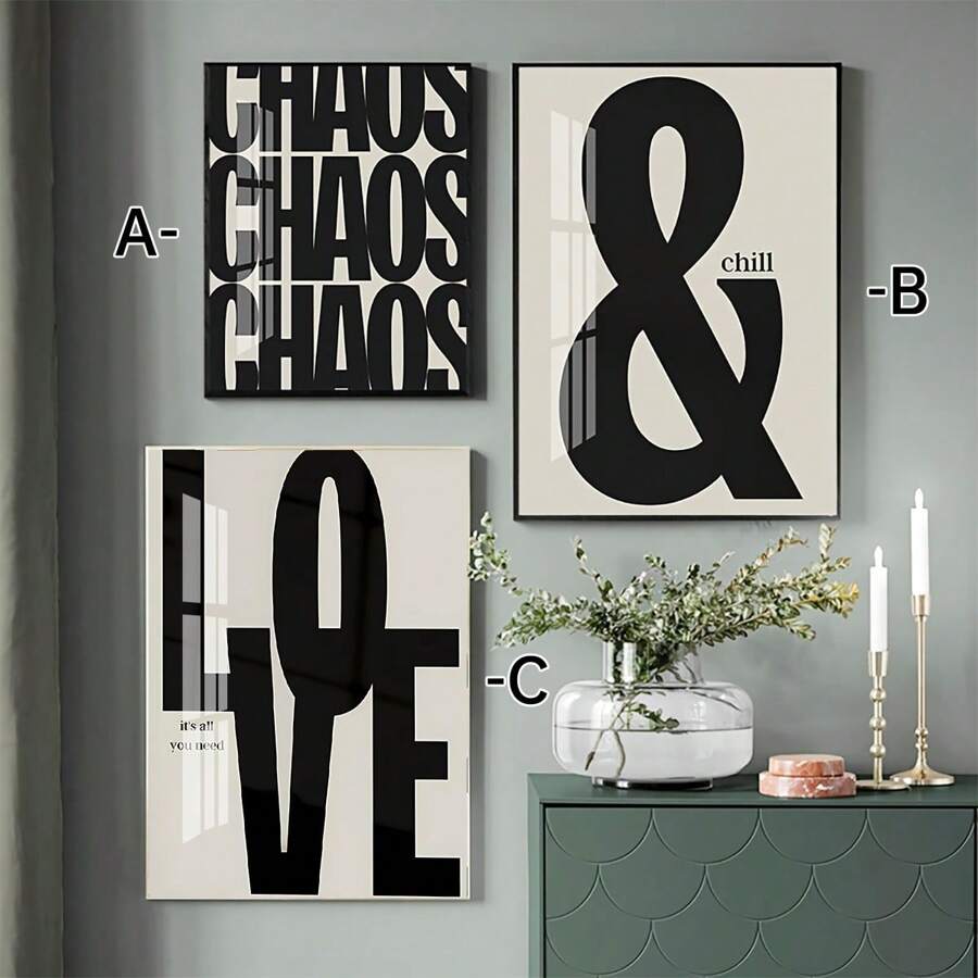 1pc,Retro Style Black And Beige Quote, Chill Home, Chaos, Textured Poster, Typography Canvas Painting, No Frame,Wall Art Gifts Birthday Graduation