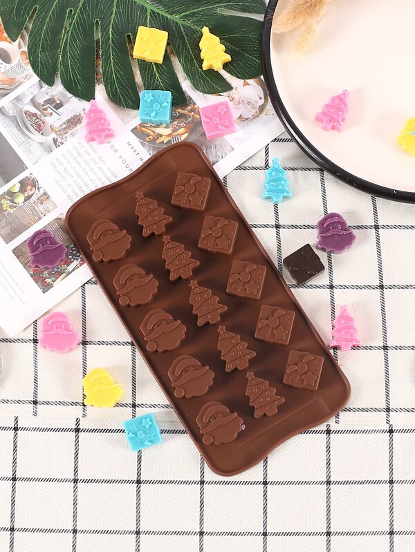 1pc Christmas silicone chocolate mold, Santa Claus Head, Christmas Tree, gift box candy jelly baking tray, suitable for the festive party cake decoration ice production