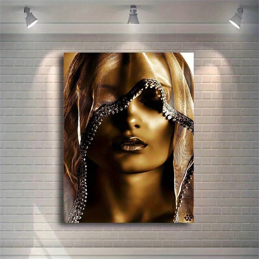 1pc Nordic Canvas Print Poster, Golden Makeup Female Oil Painting Canvas Wall Art, Artwork Wall Painting For Bathroom Bedroom Office Living Room Wall Decor, Home Decoration, No Frame