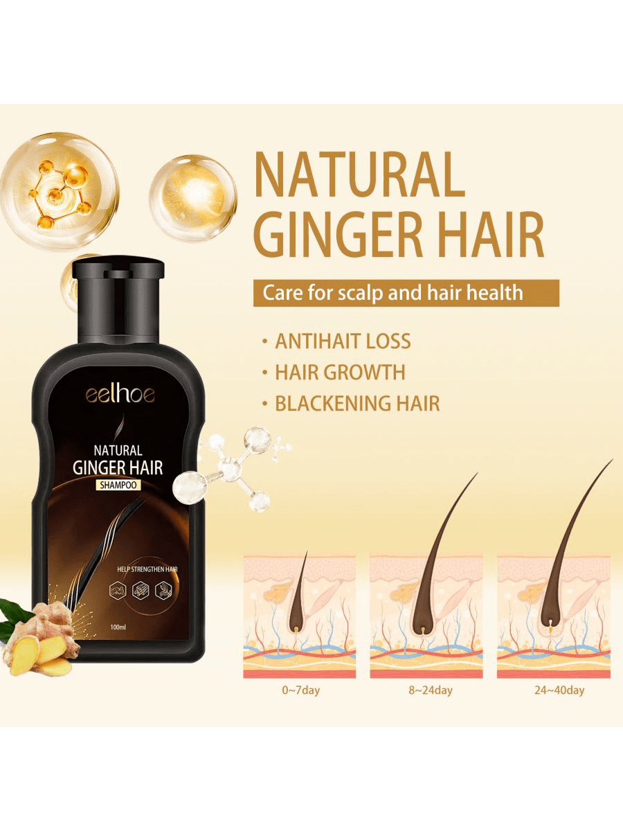 1pc 100ml Ginger Shampoo Gentle Cleansing Scalp Thickening Hair Anti-Hair Loss Strengthening Hair Roots Nourishing Repair Care Products
