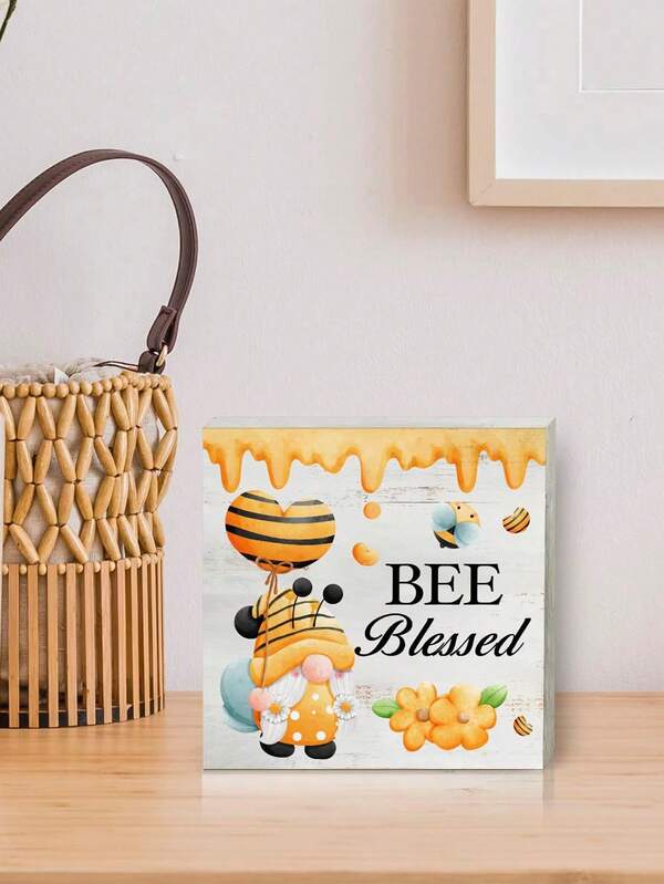 1pc 10cm*10cm Pvc Decoration With Honey Dwarf Design And 'Bee ' Text, One Nice Daily Decoration And Commemorative Gift For Friends, Suitable For Living Room, Meeting Room, Library, Desk, Bar Table, Dining Table Decoration