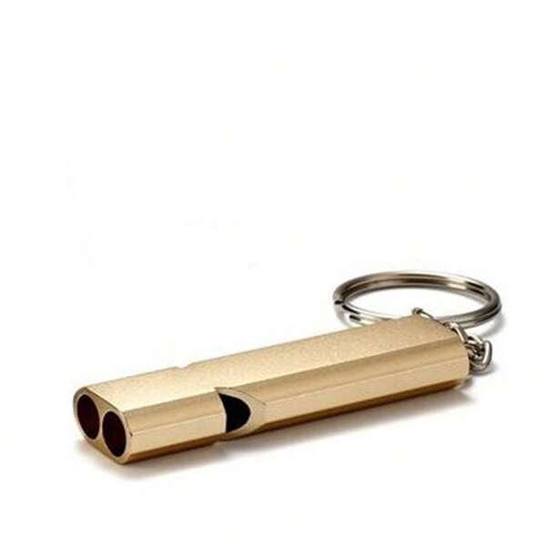 1pc 120db Outdoor Alloy Double Hole Survival WhistleKeychain Camping Emergency Tool Life Saving Kit Silvery/Golden