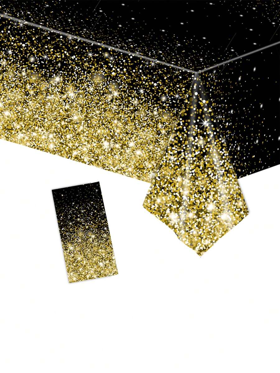 1pc 137*274cm Black And Gold Plastic Tablecloth With Gold Glitter Pink Tablecloth For Party Decoration