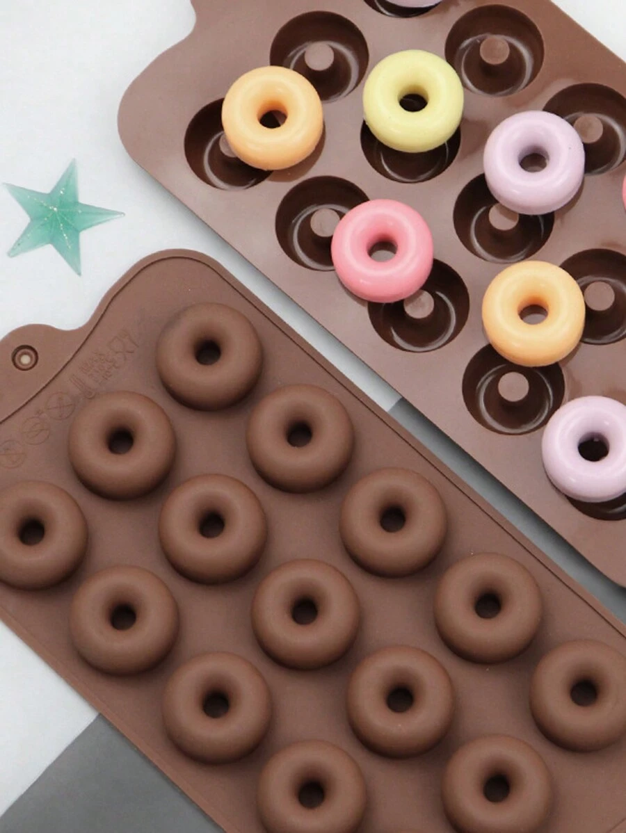 1pc 15 Cavity Silicone Mini Donut & Chocolate Mold For Diy Baking, Decorating, Fondant, Cake, Cookie Making