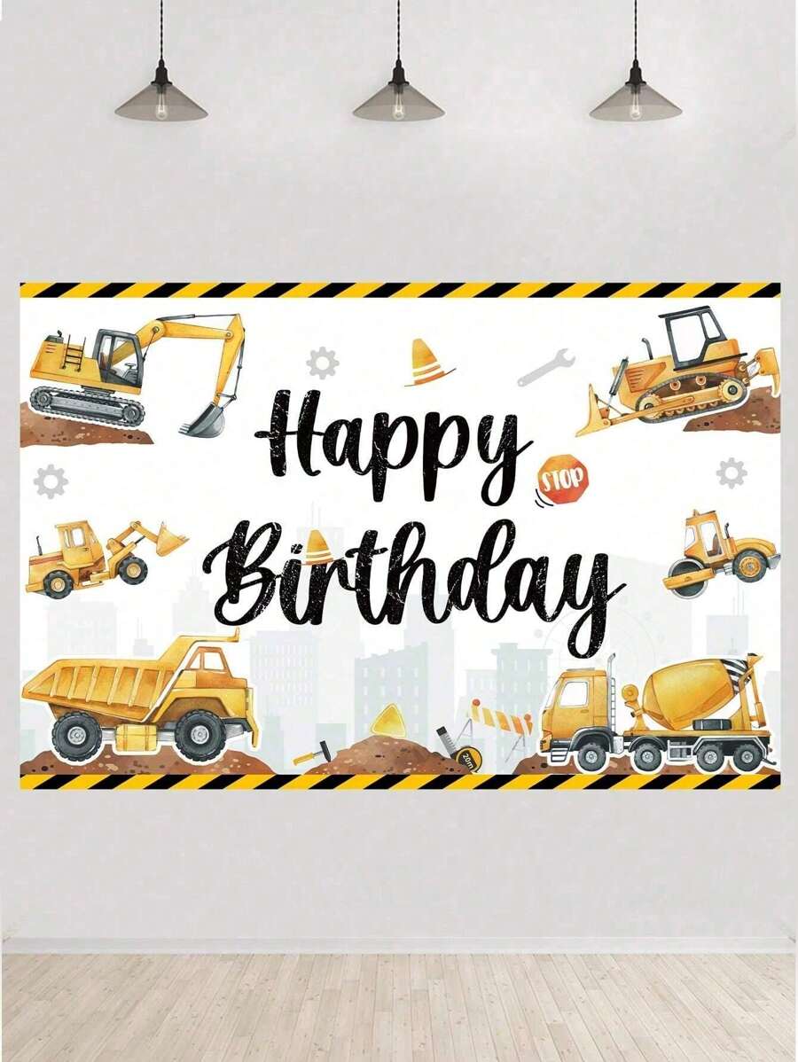 1pc 150*100cm Yellow Engineering Car Style Birthday Background Cloth, Birthday Party Background Decoration Supplies Banner