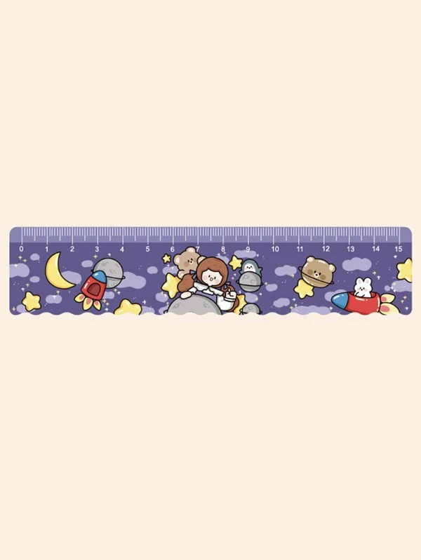 1pc 15cm Acrylic Ruler With Cartoon Patterns, Not Easily Breakable, Multi-purpose Wave Edge Design
