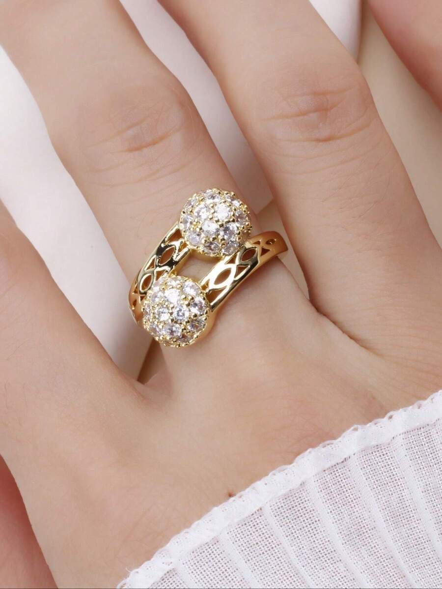 1pc 18k Gold Plated Double Ball Diamond Setting Adjustable Women's Fashion Ring, Ideal For Bride/Wedding/Engagement/Girlfriend/Mom/Bff Gift