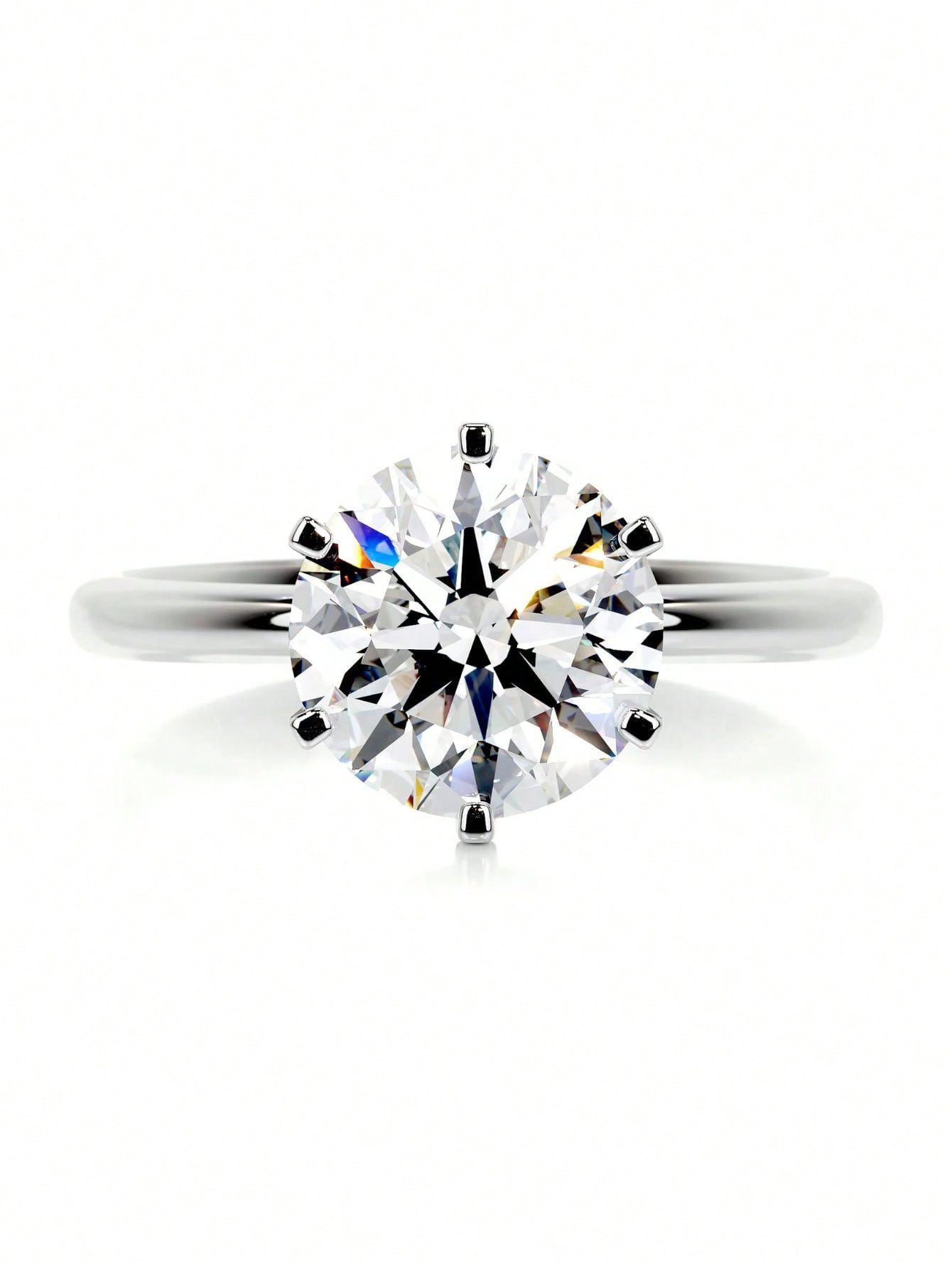 1pc 1ct Classic Six Prong Round Cut Moissanite Ring, 925 Silver Band Of Ring, Suitable For Women To Wear On Vacation, Birthday Gift For Wife, Anniversary Gift