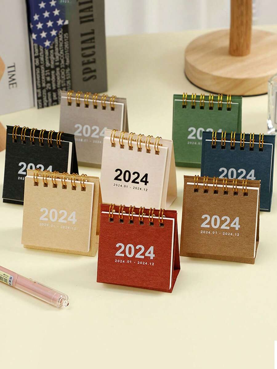1pc-2024 Simple Mini Table Calendar With Stand, Desktop Calendar, Planner Notepad, Black/pink/blue/purple/green/kraft Paper Color, Decorative Desk Calendar, 3*2.6inch (7.5*6.5cm)